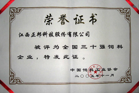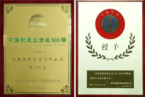 中國制造企業(yè)500強第396名; 正邦豬飼料成為中國名牌產品; 江西省原種豬場有限公司成立,正邦種豬育種步入專業(yè)化運營階段。