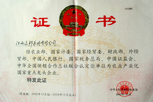 被國家九部委認定為“農業(yè)產業(yè)化國家重點龍頭企業(yè)”。