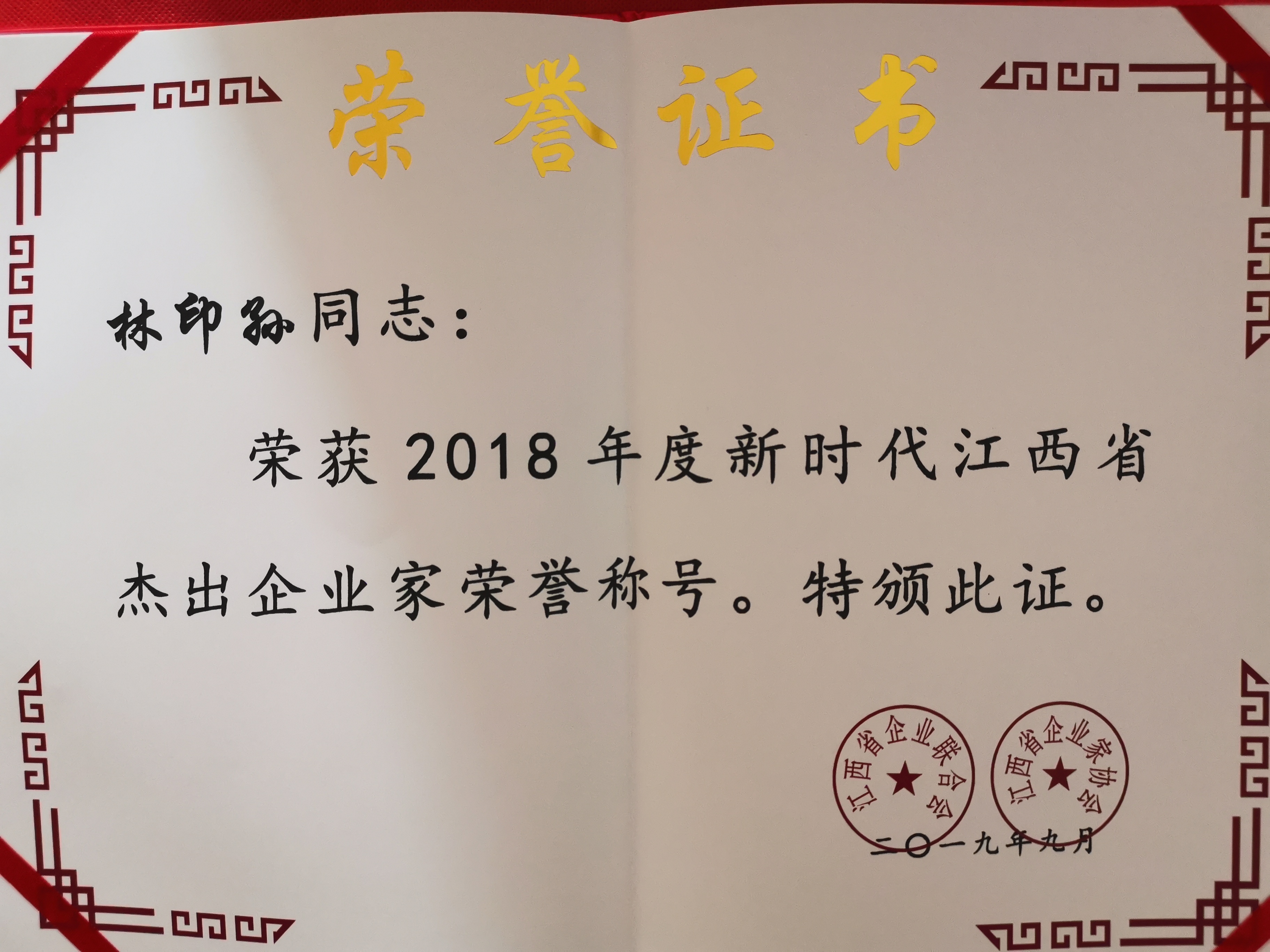 林峰2018年度江西省優(yōu)秀企業(yè)家